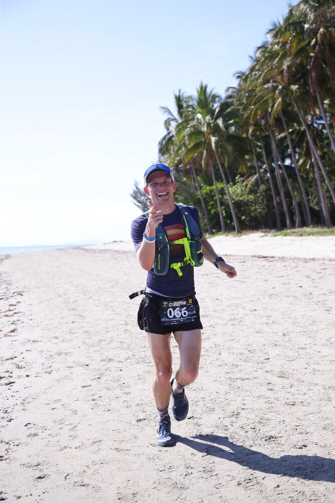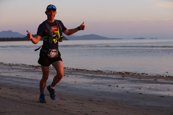 The sunrise over the beach was gorgeous, the town was quiet, but slowly our fellow competitors arrived one by one. We loved the calm and chilled nature of the start line – lining up with 100 other ‘marathoners’, the first 5k stretched ahead over the sands of Four Mile Beach. The race plan…KEEP THE EGO IN CHECK!